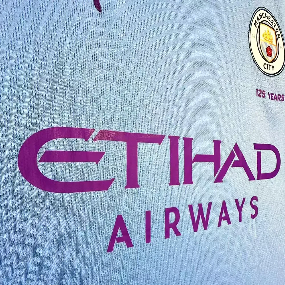 Celebrate Manchester City’s modern dominance with this authentic sky blue Manchester City Jersey from the 2019-20 season. This retro football shirt features the sleek Etihad Airways-sponsored design worn by Guardiola’s record-breaking squad, including stars like De Bruyne and Sterling. As one of our premium classic football shirts, it’s crafted with Nike’s innovative Dri-FIT technology and includes authentic woven badges. The vibrant colorway with subtle marbled pattern represents the club’s contemporary style, making this Man City Jersey a must-have for Citizens worldwide. Explore more current season kits at RFS UK Pro Jersey Shop.